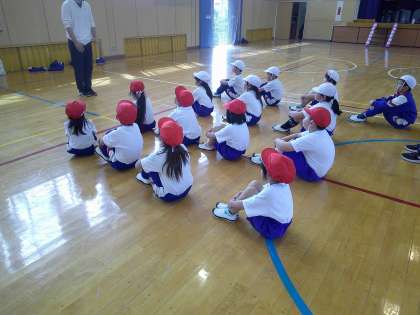 4月11日(木) 1・2年体育 公開日 2024/04/11 更新日 2024/04/11 できごと 今日は、並び方の練習の時間です。前へならえでまっすぐ並んだり、体育座りをしたりして、学校生活の基本的なことを教わりました。1回違うところに走っていって、戻ってきて整列し直すことも、とてもスムーズでした。2年生はお兄さん・お姉さんとして立派な態度で、1年生をリードしていました。