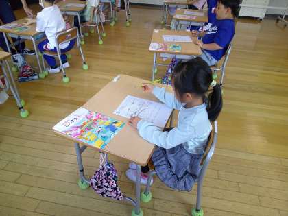 「10までの数」の学習をしています。今日は、同じ動物どうしをなかまわけして、何びきいるのかを数えました。これから義務教育9年間の算数のスタートです。算数好きの子どもたちに育ってほしいです。