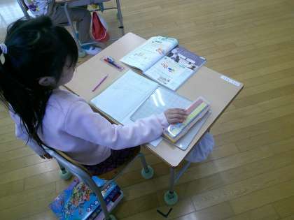 2けたのたし算の方法を考えました。「これまで」学習した『さくらんぼ図』を使って、答えを出せるように考えました。最初は「わからない」と戸惑っていた2年生ですが、さくらんぼ図に位ごとに分けることがポイントであることに気付くことができました。
