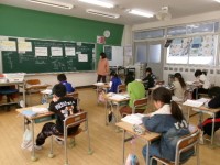 6年生の算数は、対称な図形の学習をしました。めあては、「対称の軸と点の位置との関係を基に作図しよう」です。対称の軸と点の位置との関係に注意しながら図を描いていた6年生でした。6年生にもなると、学習内容も難しくなってきます。しかし、粘り強く課題に取り組んでいました。この調子です。