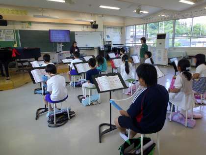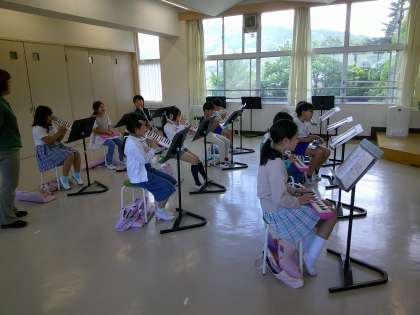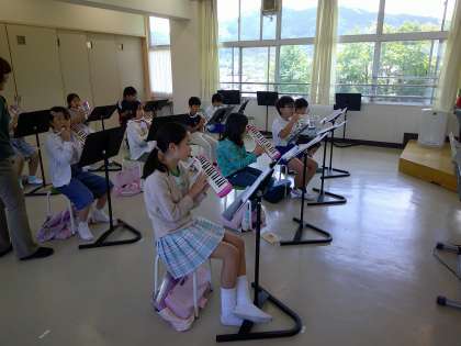 5月2日(木) 4年音楽 公開日 2024/05/02 更新日 2024/05/02 できごと 鍵盤ハーモニカで「いいことありそう」の曲を、演奏練習しました。歌を歌う子と鍵盤ハーモニカをふく子にわかれて練習しましたが、「楽器のメロディと歌が響きあった」「にぎやかになった」「楽しい」などの気づきがあり、さらに楽しい演奏になりました。
