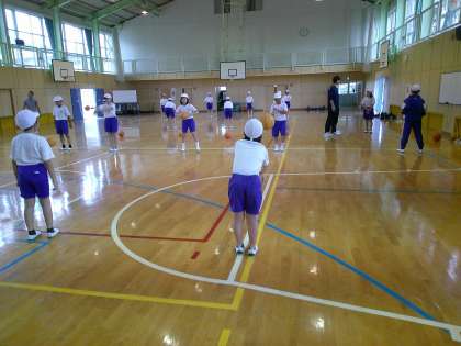 5月8日(水) 5・6年体育 公開日 2024/05/08 更新日 2024/05/08 できごと バスケットボールの学習のスタートです。子ども達は楽しみにしていたようで、真剣に取り組む様子が見られました。ドリブル、パス、シュートをひととおり練習しましたが、シュートはさすがに難しそうでした。