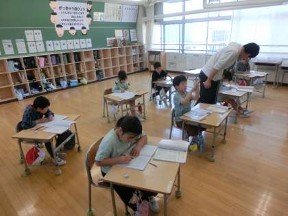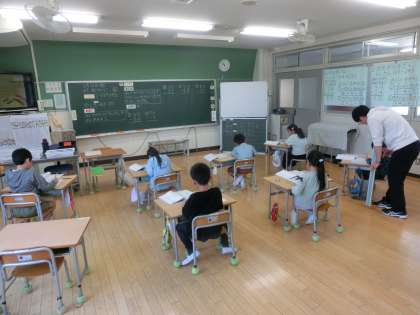2年生の算数は、「引き算の仕方を考えよう」の学習をしました。めあては、「何十から引く筆算を考えよう」です。問題を解き、友達と意見交流することを通して、何十から引く筆算も十の位から1繰り下げて計算すればよいことが分かった2年生でした。