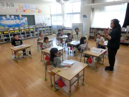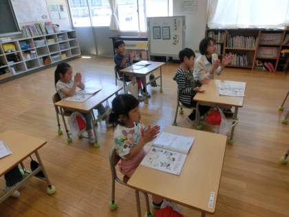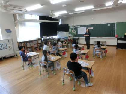 1年生の音楽は、リズムの学習をしました。めあては、「リズムを叩いて、歌いましょう」です。手を叩くときと休むときがあるのが、子どもたちには難しいところです。また、リズムを叩きながら、歌も歌うので、リズムを叩くのに夢中になってしますと、歌がおろそかになってしまいます。両方がうまくできるように頑張っていた1年生でした。