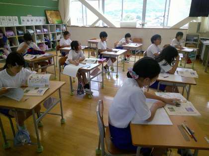 「ねがいを積み上げた石橋」が今日の資料でした。まちの魅力に気がつかなかったが、外から来た人たちに気付かされるという内容でした。授業の後半は、鬼石の魅力についての話合いになり、盛り上がりました。