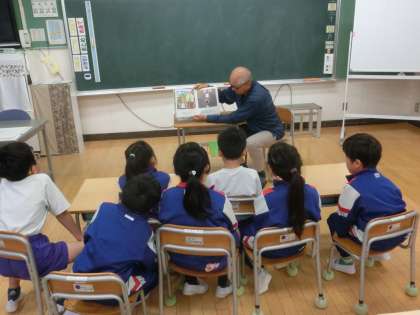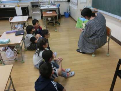 今日の朝の活動は、読み聞かせボランティアの方に来校いただき、読み聞かせをしていただきました。子供たちが楽しみにしている月に1度の活動です。様子を見に教室へ行ってみると、みんな夢中になってお話を聞いていました。読み聞かせがきっかけで、読書も好きになっています。