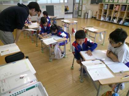 5月20日(月) 2年国語 公開日 2024/05/20 更新日 2024/05/20 できごと 順序を考えて話をすることが本時のめあてです。先生から、つなぎ教材である資料「たんぽぽが変わっていく順序」が例示されると、子ども達は今日の課題「今日朝起きてからしたこと」について、どんどん考えてノートにまとめていました。