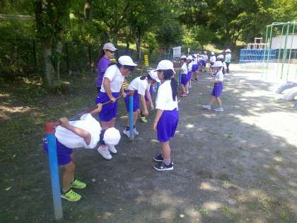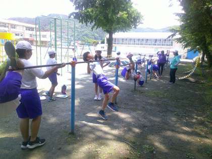 5月21日(火) 3・4年体育 公開日 2024/05/21 更新日 2024/05/21 できごと 鉄棒にチャレンジしています。「逆上がり」「だるま回り」「ひざかけ上がり」「空中逆上がり」で、カードのできる技からチャレンジしています。本校では、体力テストの結果として、腕の筋力、握力などが落ちているという結果もでているので、身近な遊びから徐々に力をつけていきたいと思っています。