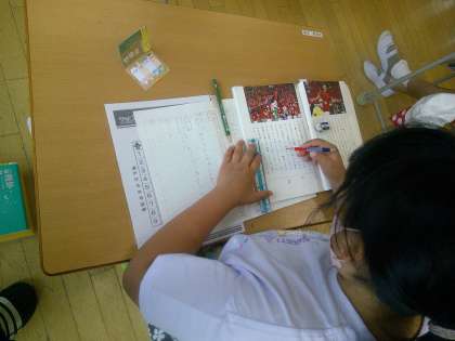 5月23日(木) 4年国語 公開日 2024/05/23 更新日 2024/05/23 できごと 「アップとルーズで伝える」の学習をしています。今日のめあては「4〜6段落のアップとルーズの違いを読み取ろう」です。アップを赤い線、ルーズを青い線で教科書に線を引きながら、文章を読みました。