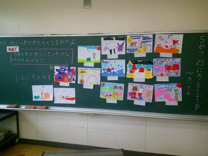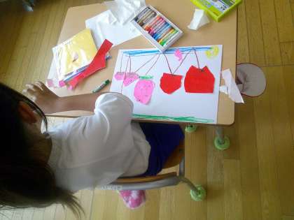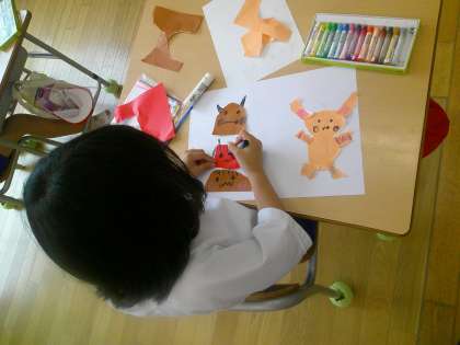5月23日(木) 1年図工 公開日 2024/05/23 更新日 2024/05/23 できごと 「やぶいたかたちからうまれたよ」の学習をしています。今日のめあては「かみをそっとやぶいて、いろいろな形をみつけよう」でした。折り紙を手で切ることで形が定まらないので、子ども達は四苦八苦しながら作品を完成させていました。