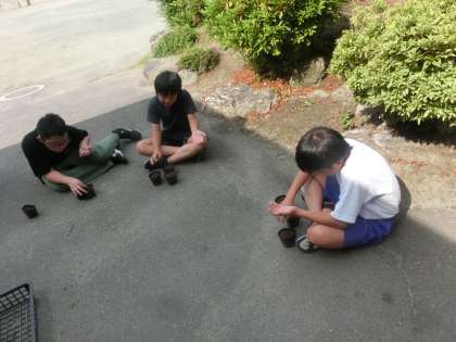 鬼石小学校では、人権の花であるマリーゴールドを育てる活動に取り組んでいます。各学年ごとに種をまきました。とても小さな種だったので、少し大変でした。大きく育ち、きれいな花が咲いてほしいです。