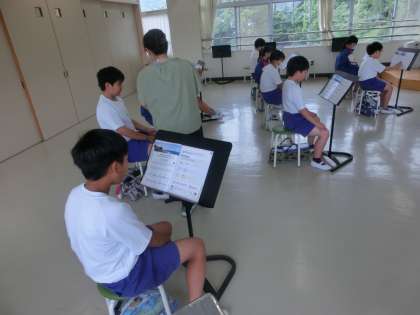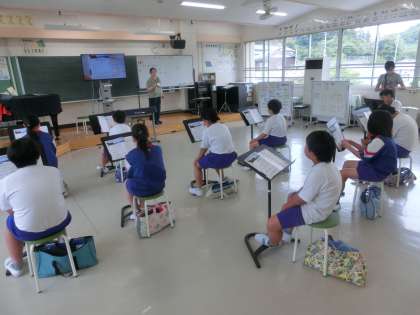 5年生の音楽は、「音の重なりを感じ取ろう」の学習をしました。めあては、「重なり方の違いに気を付けて、合唱しよう。」です。今回合唱する「いつでもあの海は」は、ア、イ、ウの3つに分かれており、イは2つの旋律が異なるリズムで重なる部分になっています。重なり方の違いに注意しながら、合唱を楽しんでいた5年生でした。