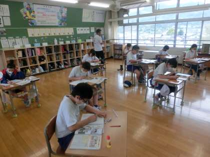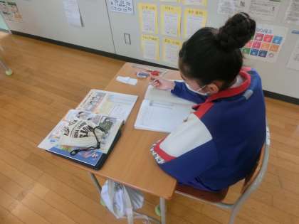 6年生の算数は、「データの特長を調べる」の学習をしました。めあては、「どちらの方が多く借りているか、データをもとに考えよう」です。何をもとに、どのように比べるかの意見を出し合いながら、比べることができた6年生でした。
