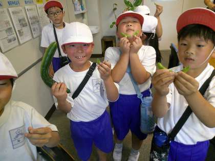 6月17日(月) 2年生活科 公開日 2024/06/17 更新日 2024/06/17 できごと 生活科で野菜を育てていますが、今日は収穫できた野菜を校長室に見せに来てくれました。大きくなったキュウリを「見て、見て」とうれしそうに見せてくれた2年生。このような感動体験は、2年生をさらに成長させます。