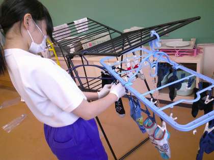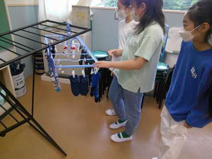 6月18日(火) 6年家庭 公開日 2024/06/18 更新日 2024/06/18 できごと 今日は、洗濯の実習を行いました。自分のくつ下をごしごし手洗いで行いました。きれいになったくつ下を見て、満足そうな6年生でした。
