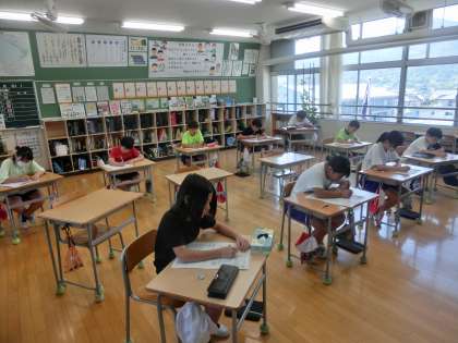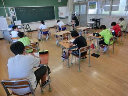 5年生の算数は、「小数のわり算」の再テストを行いました。やや苦手にしているところを克服するために再チャレンジです。一度解いている問題なので、スムーズに進めていましたが、前のテストで間違ってしまった問題は、少し苦労していました。再テストの結果が分からないのですが、苦手を克服できたのではないかと期待しています。