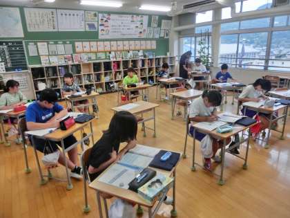 5年生の算数は、「合同な図形」の学習をしました。これまでに合同の図形を学んできた5年生は、学習のまとめとして問題演習に取り組みました。教科書の「たしかめ問題」をすらすら解いていきました。いいですね。