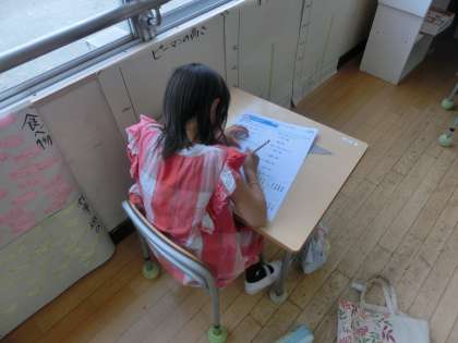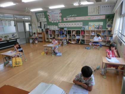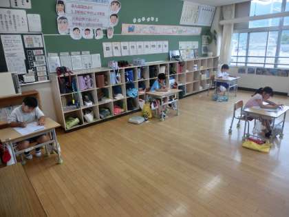 3年生の算数は、1学期のまとめテストを行いました。これまでに「かけ算」「わり算」「たし算とわり算の筆算」「ぼうグラフと表」「時刻と時間」などを学習してきた3年生は、テストで定着度を確認します。悩みながらも最後まで真剣にテストに取り組むことができました。でき具合が気になる3年生です。