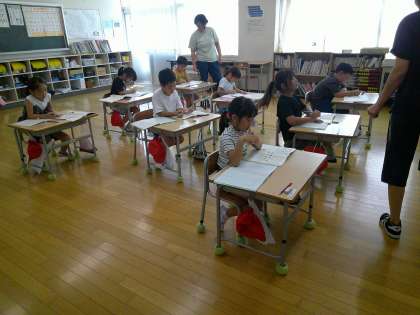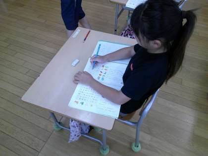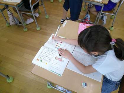 9月2日(月) 1年国語「ことばをみつけよう」【進んで学ぶ子】 公開日 2024/09/02 更新日 2024/09/02 できごと マスの中に書かれたことばをみつける学習をしました。子どもたちは、たて、よこ、ななめのひらがなを繋げて、ことばを探しだし、いくつみつけられるかを競っていました。これまで習ったことば、生活の中で知ったことばなどを思い出しながら、学習できました。