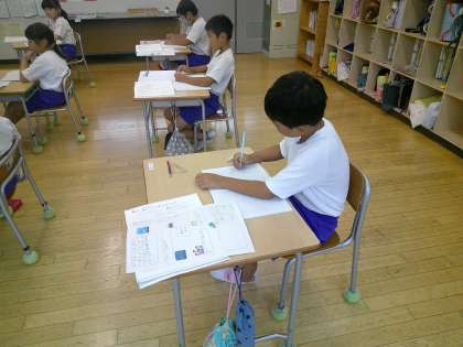 9月3日(火) 3年国語「作文」【進んで学ぶ子】 公開日 2024/09/03 更新日 2024/09/03 できごと 今日のめあては「夏休みの思い出を作文に書こう」でした。子どもたちは、前の時間に作成した夏休みの思い出ワークシートをもとに、作文を書きました。ひまわりを育てたことや映画館や水族館に行ったことなどを楽しそうに作文していました。