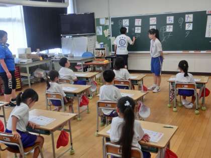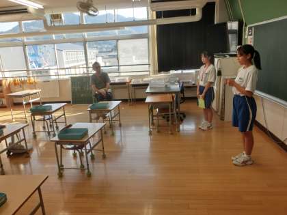 藤岡市内の中学2年生が学校を離れて1週間職場で働く体験をするのが「チャレンジウィーク」です。2名の中学生が鬼石小学校で学校の先生の職業体験をしました。2名は小学1年生と2年生の担当となりました。学習を一緒にしたり、休み時間に楽しく遊んだりするなど、充実した4日間を過ごしていました。職場他体験の最後に「実習報告会」を行い、体験を通して学んだことを発表しました。とてもよく頑張っていました。すばらしいです。月曜日からは二人の中学生は鬼石中に戻るので、1・2年生はとてもさみしそうでした。お疲れ様でした。