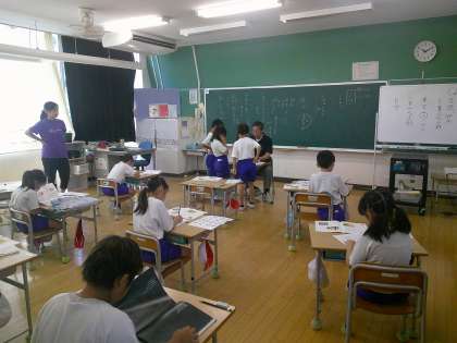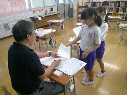 今日は「ことわざ」を硬筆で練習しました。また、時間の終わりに、毛筆で書いた自分の名前を先生から返却され、「じょうずに書けましたと書いてもらった」など、うれしそうな表情が見られました。