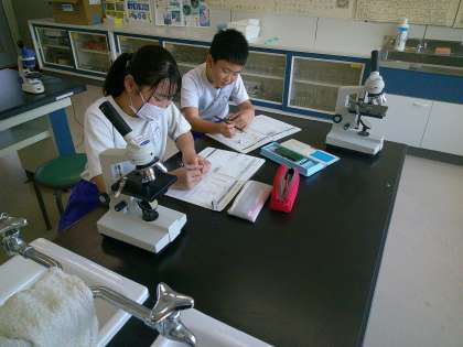 9月12日(木) 5年理科「花粉のつくり」【進んで学ぶ子】 公開日 2024/09/13 更新日 2024/09/13 できごと 今日のめあては、「ヘチマやアサガオの花粉はどのようなつくりをしているのだろう」でした。電子顕微鏡を使って上手に画像に残し、気づいたことをワークシートに記載していました。