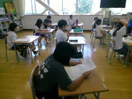 今日行われる避難訓練の事前指導を各クラスで行いました。不審者が侵入した際の心構えと実際の行動を確認しました。「緊急連絡カード」のある場所などの確認もしました。
