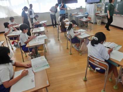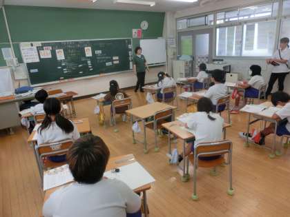 4年生の道徳は、読み物資料「学級新聞作り」を活用しながら考える学習をしました。めあては「友達と一緒に活動するときに、大切なことを考えよう」です。主人公のわたしと黒羽さんは学級新聞係で、ともにもっとよい学級新聞にしたいと考えています。そんなとき、二人は次の学級新聞の記事で言い争いになってしまいます。主人公のわたしは、黒羽さんに何と言えばよいかを考え、意見を交換させました。意見交換を通して、子供たちは「相手のことを考えることも大切」と考えるようになりました。今日の授業は、研究授業であったので、たくさんの先生が授業の様子を見ていました。少し緊張したかもしれませんが、じっくりと考え、堂々とした態度で自分の考えを発表していた4年生でした。すばらしいです。