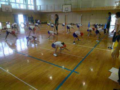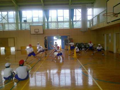 9月19日(木) 1〜6年体育「鬼小ソーラン」【進んで学ぶ子】 公開日 2024/09/19 更新日 2024/09/19 できごと 全校ソーランの練習をしました。先生から「腰を落として(低くして)」の声がかけられると、さらに頑張る児童。日に日に力強くなってきました。「どっこいしょ、どっこいしょ」のところは、やはり見所です。
