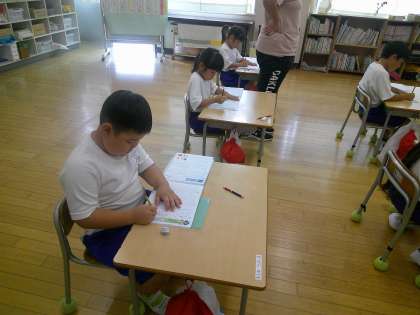 9月19日(木) 1年国語「カタカナをみつけよう」【進んで学ぶ子】 公開日 2024/09/19 更新日 2024/09/19 できごと 今日はカタカナを書く練習をしました。姿勢良く、黙々と学習に向かう1年生。毎日成長を感じています。字もていねいに書いています。