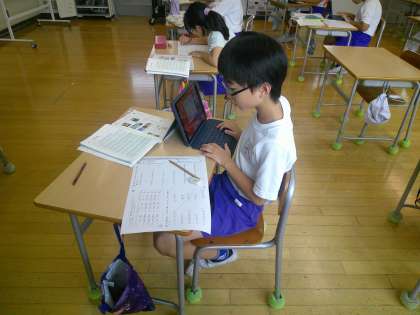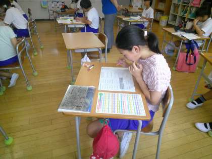 今日の学習はローマ字です。「これまで」3年生の時に学習しているローマ字ですが、忘れてしまったようでした。「これまで」学習したことを思い出しながら、プリントに取り組みました。