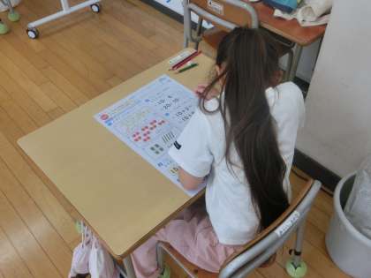 1年生の算数は、「10より大きい数」の学習が終了したので、そのまとめとしてテストをしました。じっくりと問題を読み、答えを求めていました。すらすら問題を解いていました。いいですね。