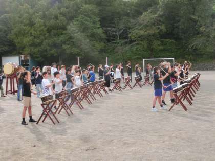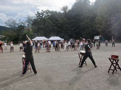 28日(土)の運動会において、5・6年生が、「鬼石祭囃子」の太鼓を演奏します。子供たちは、これまでに鬼石祭囃子保存会の方をはじめ、「本町」「仲町」「上町」「相生町」「三杉町」の方々に太鼓演奏の仕方を教わり、技能を高めてきました。今日は、運動会のリハーサルを兼ねて、校庭で本番と同じように演奏しました。立派な演奏でした。本番が楽しみです。また、子供たちが楽しそうに太鼓を演奏している姿を見て、鬼石が誇る伝統文化を自分たちも受け継いでいこうという意識も高まっているのではないかと思いました。地域の皆様、ありがとうございました。