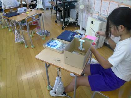 10月2日(水) 5年図工「のぞいて広がるひみつの景色」【進んで学ぶ子】 公開日 2024/10/02 更新日 2024/10/02 できごと 「のぞいて広がるひみつの景色」の作品づくりをしました。箱の中を少しのぞいてみると、それぞれの子どもたちが考えた景色が広がっていました。光の色や材料の工夫により、おもしろく目に映る作品です。