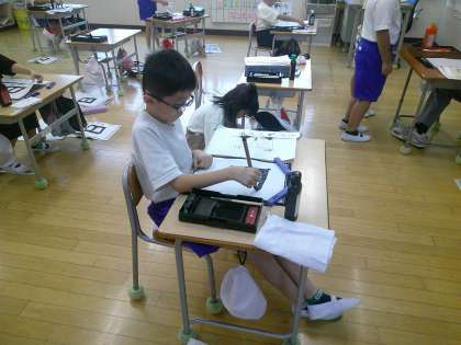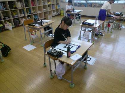 10月3日(木) 3年書写「日(毛筆)」【進んで学ぶ子】 公開日 2024/10/03 更新日 2024/10/03 できごと 今日は毛筆「日」にチャレンジしました。字を書く姿勢もよく、筆遣いも上手になってきました。先生に褒められると、うれしそうな3年生でした。