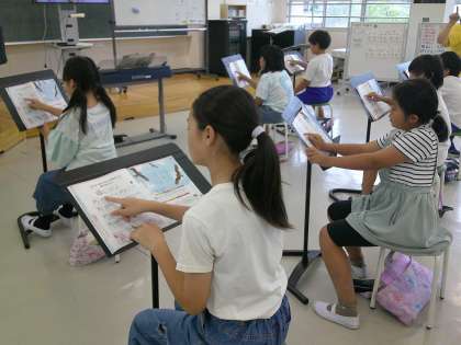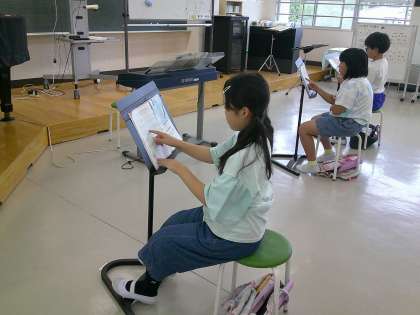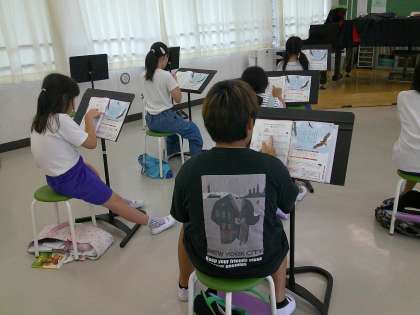 10月3日(木) 4年音楽「せんりつの重なりを感じとろう」【進んで学ぶ子】 公開日 2024/10/03 更新日 2024/10/03 できごと 今日のめあては「せんりつの特徴を生かして歌いましょう」でした。楽譜を指でなぞりながら、「とんび」の歌の特徴を確認しました。