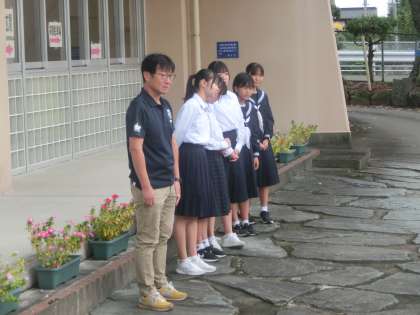 鬼中生や鬼石小PTA本部役員、民生児童委員やあいさつボランティアの方に来校いただき、10月の小中P民あいさつ運動を行いました。「おはよう」「おはようございます」元気なあいさつが交わされます。もっともっと活発なあいさつを行い、あいさつの輪を地域全体に広げていきたいです。