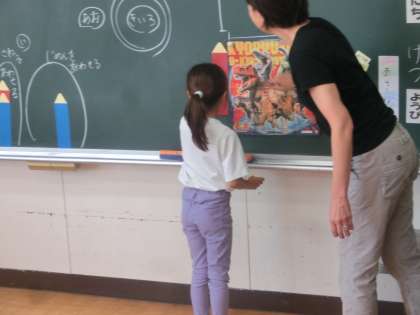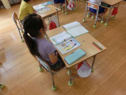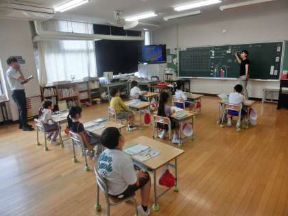 1年生の算数は、「長さ比べ」の学習をしました。めあては「比べ方を考えよう」です。「2本の鉛筆」「2つの縄跳び」「ハンカチの縦と横」それぞれどちらが長いか比べ方を考えました。「まっすぐにしたり、おったりすると長さを比べる」ことができるのが分かった1年生でした。