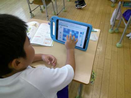 10月8日(火) 2年算数「三角形と四角形」【進んで学ぶ子】 公開日 2024/10/08 更新日 2024/10/08 できごと 今日のめあては「いろいろなもようづくりをしよう」でした。学習してきた三角形と四角形を使って、タブレット上で作りました。子どもたちはできあがるとうれしそうに、次のもようづくりに取りかかっていました。