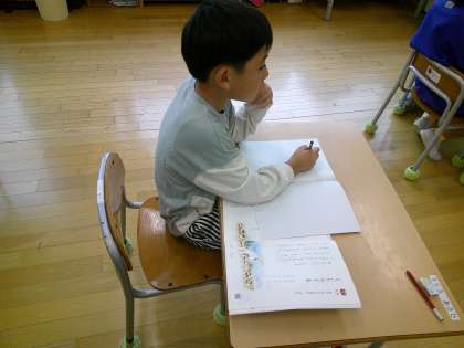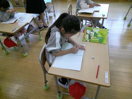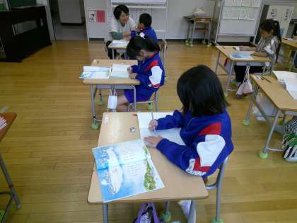 1年生の代表的な読み物教材「くじらぐも」の学習に今日から入りました。今日はみんなで音読した後に、感想を書きました。「おもしろかった」「みんながたのしそうだった」「くもにのってみたい」など、想像性豊かに書いていました。読んだあとの子どもたちのうれしそうな表情が印象的でした。