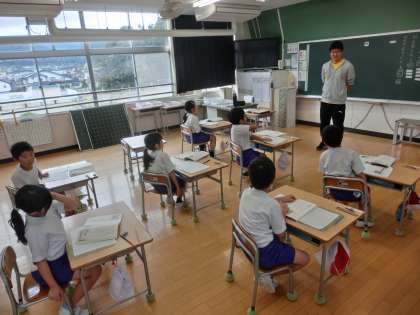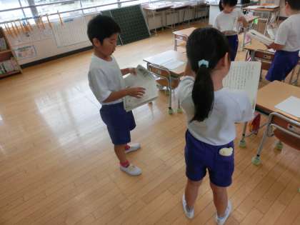 2年生の国語は、物語文「お手紙」の学習をしました。めあては「登場人物を確認し、気持ちをこめて音読しよう」です。この物語に登場するのは、「がまくん」「かえるくん」「かたつむりくん」です。さっそく音読してみましたが、なかなかうまく気持ちをこめることができません。それぞれの場面で、登場人物がどんな気持ちだったのかがよく分かると、気持ちをこめることができると思います。この後の学習では、物語をじっくりと読みながら、登場人物の気持ちをくわしく考えていきたいと思います。