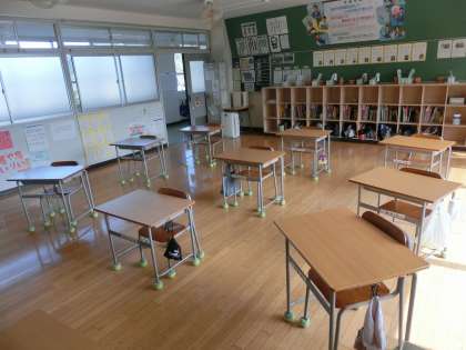 6年教室に行ってみると、主のいない教室はとてもひっそりとしていました。6年生が修学旅行先の鎌倉で楽しんでいる分、6年教室はさみしそうでした。「早く帰ってこないかな。つまらないよ。」という教室の声が聞こえた気がしました。