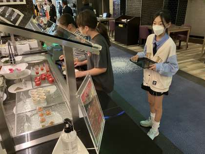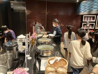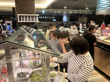 ビッフェ形式で夕食を食べています。 好きなものを食べられるので、何度も取りに行っていました。