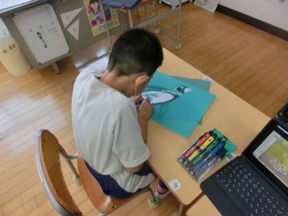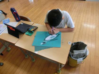 くわの実2組の図工は、「彫り進み版画」をしました。ペンギンを題材に版画の制作をしています。水の中を気持ちよさそうに泳いでいる姿を版画に表現しています。彫刻刀を使って彫っていくのですが、けがをしないように慎重に作業をしていました。仕上がりが楽しみです。
