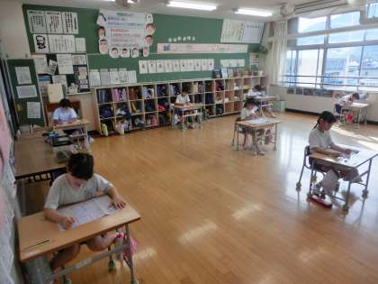 3年生の国語は、「おすすめの1さつを決めよう」の学習が終了したので、テストを行いました。みんな集中して問題を解いていました。点数が気になると思いますが、自分が満足する点数になるといいですね。