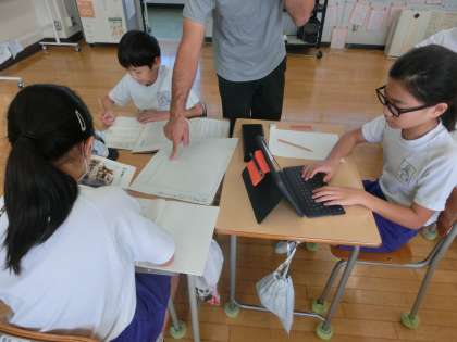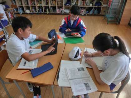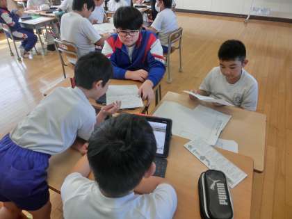 5年生の総合的な学習は、「鬼石の文化再発見」の学習を行い、鬼石の伝統について調べたことを記事にまとめました。めあては「言葉を分かりやすくし、理解を深めよう」です。郷土資料やインターネットを使って調べたことをまとめます。友達と協力しながら進めていました。仕上がりが楽しみです。