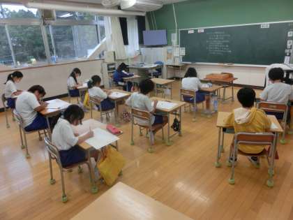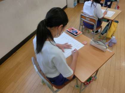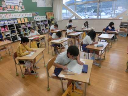 鬼石小では、子供たちの漢字書き取りの力を高めるために漢字博士テストを定期的に行っています。明日23日が漢字博士テスト実施日で、100点を目指して繰り返し漢字を練習してきました。4年生も明日のテストに向けて練習を重ね、合格を目指しています。今日もテストのプリントをしたり、ノートに漢字を書いたりしました。明日のテスト、うまくいくといいですね。