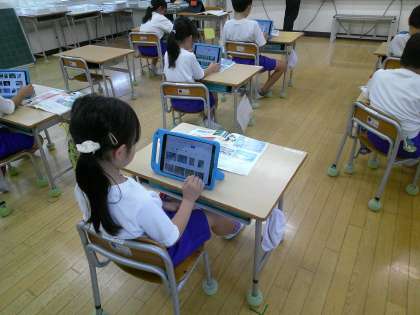10月24日(木) 2年図工「ことばのかたち」【進んで学ぶ子】 公開日 2024/10/24 更新日 2024/10/24 できごと 今日は読書感想画「アチケと天のじゃがいも畑」を描きました。登場人物と動物をどのように構図していくのか、悩んでいる児童が多かったです。先生にアドバイスをもらいながら、少しずつ描いていました。