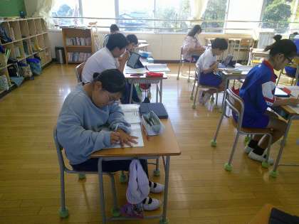 今日は単位量あたりの大きさのまとめ問題に挑戦しました。子どもたちはじっくり考え、答えを導き出していました。単位量あたりの大きさは、「わられる数」と「わる数」の区別が問題文からしっかりできるかがカギとなります。集中してじっくり問題に向き合っている児童が多かったです。